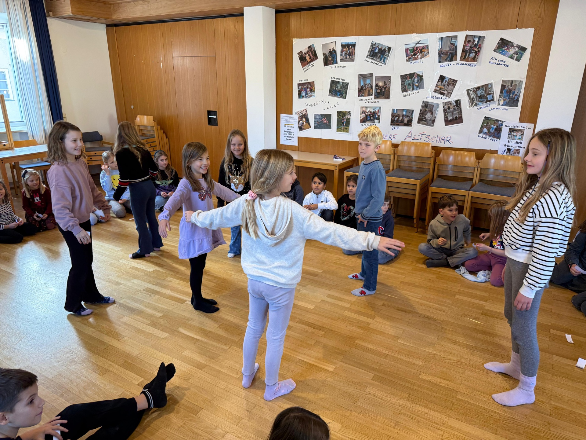 Ganz egal ob Müll sammeln, Gottesdienstgestaltung, Ratschen oder Eis essen - in den Jungschar- und Ministunden ist es immer lustig! Diesmal wurde Weihnachten ein wenig vorgezogen. Nach der Sternsingerprobe trafen sich alle in der Kirche zu einer besinnlichen Andacht die anschließend im Pfarrheim zu einer netten Weihnachstfeier wurde. Die Altschar nutzte das Treffen auch gleich zum Verpacken der Geschenke für die Tafel.